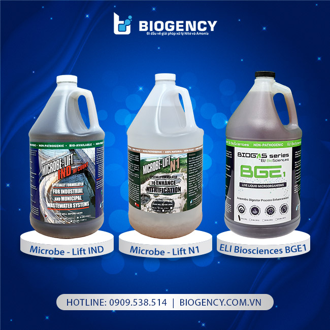 - Men vi sinh Microbe-Lift IND: Bổ sung vào bể hiếu khí và thiếu khí. Sản phẩm này có chứa 13 chủng vi sinh vật xử lý BOD, COD, TSS ở bể hiếu khí và khử Nitrat ở bể thiếu khí.