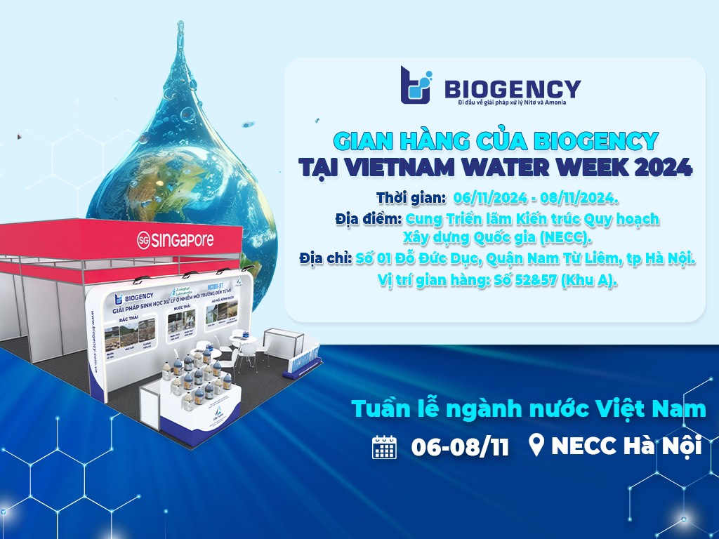 Vào ngày 06-08/11 sắp tới, BIOGENCY sẽ có mặt tại Vietnam Water Week 2024 – Tuần lễ ngành nước Việt Nam. Trong lần tham gia lần này, BIOGENCY sẽ mang đến “Giải pháp sinh học xử lý ô nhiễm môi trường đến từ Mỹ”.
