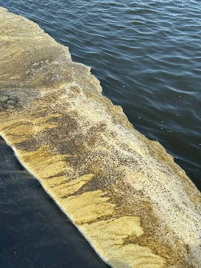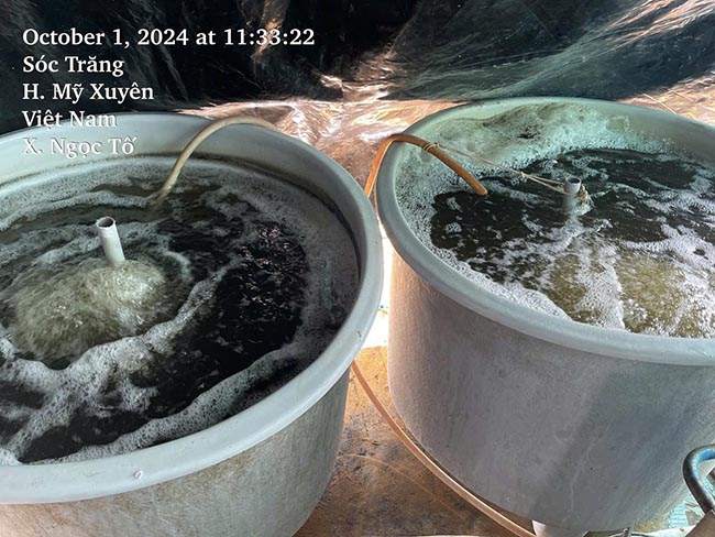 Tại trường hợp ao của khách hàng, sau khoảng 25 ngày thả nuôi, dù hệ thống quạt nước hoạt động liên tục nhưng đã gặp phải tình trạng nước ao bắt đầu đục, màu chuyển sang xanh sẫm, pH dao động mạnh giữa ngày và đêm. Kiểm tra nhanh cho thấy khí độc NO2 có xu hướng tăng, đặc biệt vào sáng sớm. Đáy ao tuy có lót bạt nhưng vẫn xuất hiện lớp nhớt hữu cơ, mùi hôi nhẹ khi khuấy đáy.