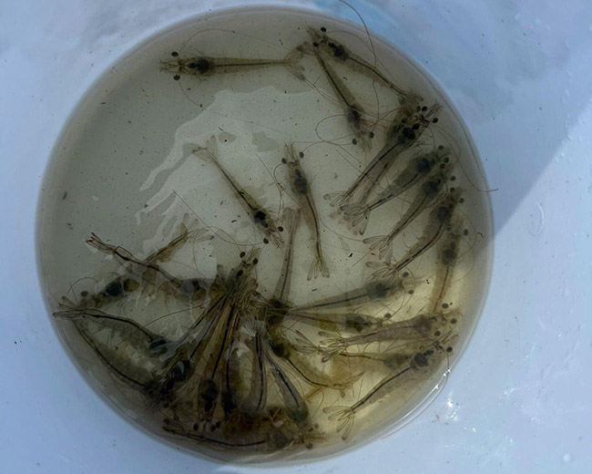 - Khi đường ruột tôm ổn định: Định kì 2-3ml/kg thức ăn.