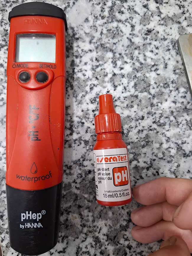Đầu tiên, bà con nuôi tôm cần kiểm tra độ pH trong ao nuôi bằng bút đo pH hoặc các loại thuốc thử chuyên dụng. Lấy mẫu nước ao cách mặt nước khoảng 30-40cm và đo pH vào thời điểm buổi sáng lúc 6 giờ hoặc buổi chiều vào lúc 14 giờ.