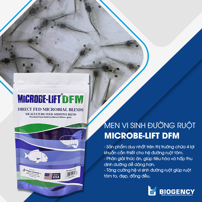 Sản phẩm men vi sinh đường ruột cho tôm Microbe-Lift DFM giúp tăng đề kháng cho tôm, hỗ trợ hệ tiêu hóa và đặc biệt cần thiết trong các trường hợp độ pH ao nuôi dao động, sau cơn mưa hoặc sau khi xử lý nước và đáy ao.