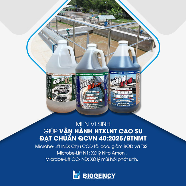 Để đáp ứng yêu cầu của QCVN 40:2025/BTNMT, các nhà máy cao su cần vận hành HTXLNT cao su một cách khoa học, kiểm soát chặt chẽ từng công đoạn và duy trì hệ vi sinh khỏe mạnh. Việc kết hợp quy trình vận hành hợp lý và giải pháp vi sinh phù hợp sẽ giúp doanh nghiệp ổn định hệ thống xử lý, giảm rủi ro vi phạm quy chuẩn và đảm bảo hoạt động sản xuất bền vững. Hãy liên hệ ngay với BIOGENCY qua HOTLINE 0909 538 514 để được tư vấn chi tiết và miễn phí!