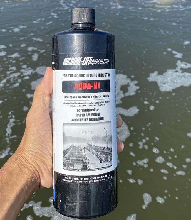 - Sử dụng vi sinh xử lý khí độc: Để đảm bảo nồng độ khí độc ở mức an toàn trước khi khí độc tăng cao. Sử dụng AQUA N1 định kỳ mỗi tuần 2 lần để chuyển hóa NH3/NH4 được sinh ra.