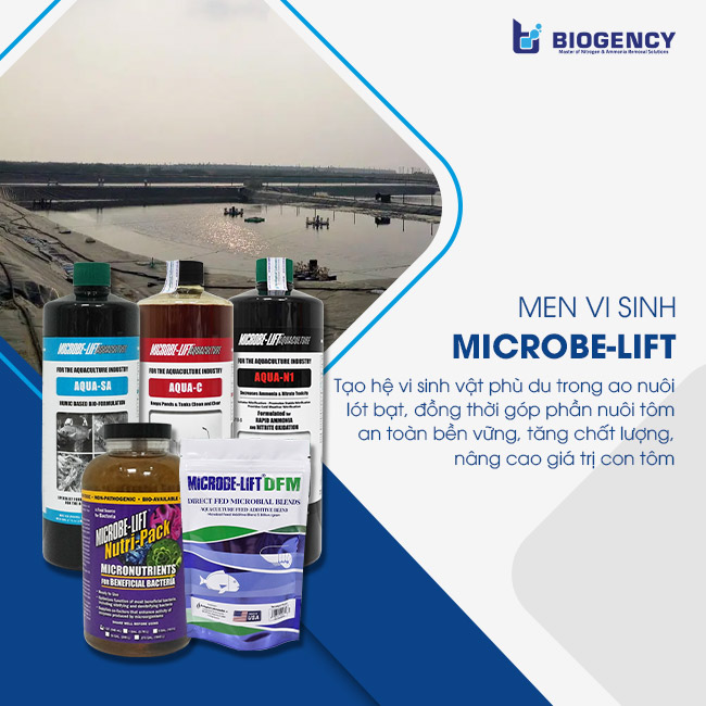 - Men vi sinh Microbe-Lift AQUA C: Làm sạch ao nuôi, gây màu, tạo hệ sinh thái thuận lợi cho tôm sinh trưởng, phát triển
