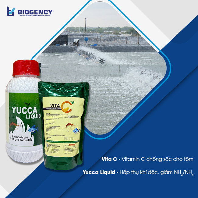- Xử lý khí độc: sử dụng Yucca hoặc chế phẩm hấp thụ khí độc để giảm NH3 và H2S trong ao.
