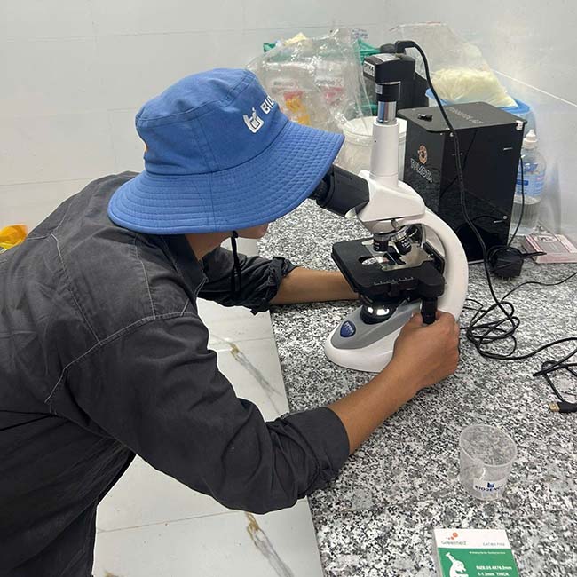 - Phản ứng nhanh – Giảm rủi ro: Thay vì chờ tôm bỏ ăn mới tìm nguyên nhân, phòng lab giúp cảnh báo sớm. Ví dụ: Thấy mật độ tảo độc tăng nhẹ qua kính hiển vi Xử lý cắt tảo bằng vi sinh ngay ngăn chặn hiện tượng sụp tảo gây thiếu oxy.