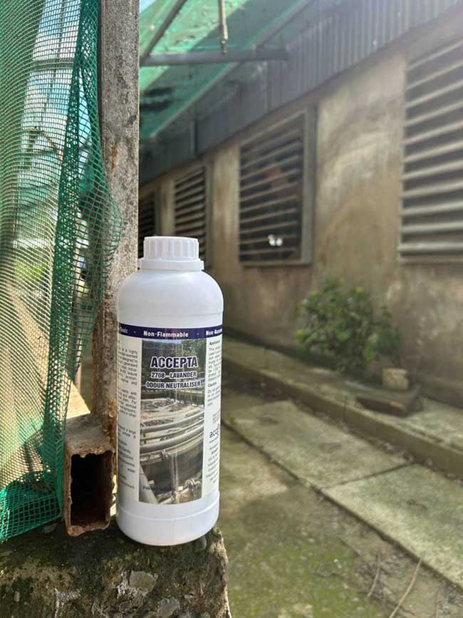 Cơ chế: Accepta 2708 là dung dịch khử mùi chuyên dụng, có khả năng trung hòa và hấp thụ nhanh các khí độc phát tán ra ngoài.