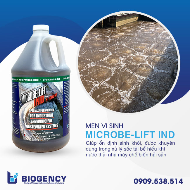 Men vi sinh Microbe-Lift IND giúp ổn định sinh khối, được khuyên dùng trong xử lý sốc tải bể hiếu khí nước thải nhà máy chế biến hải sản.