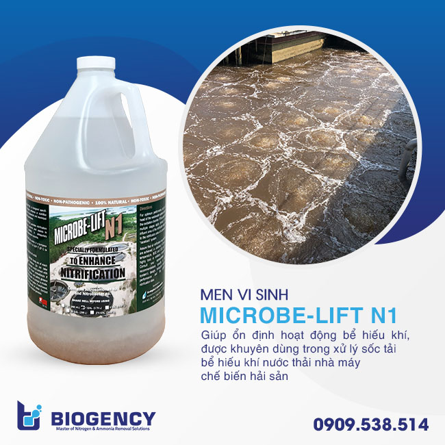 Men vi sinh Microbe-Lift N1 giúp ổn định hoạt động bể hiếu khí, được khuyên dùng trong xử lý sốc tải bể hiếu khí nước thải nhà máy chế biến hải sản.